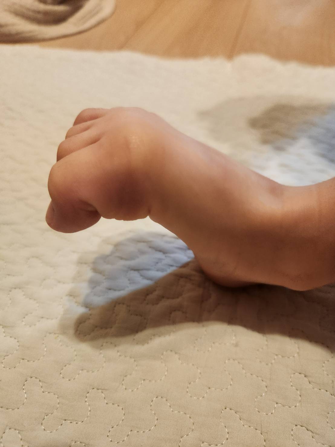 息子に「足でグーしてみて」と言った結果です。
